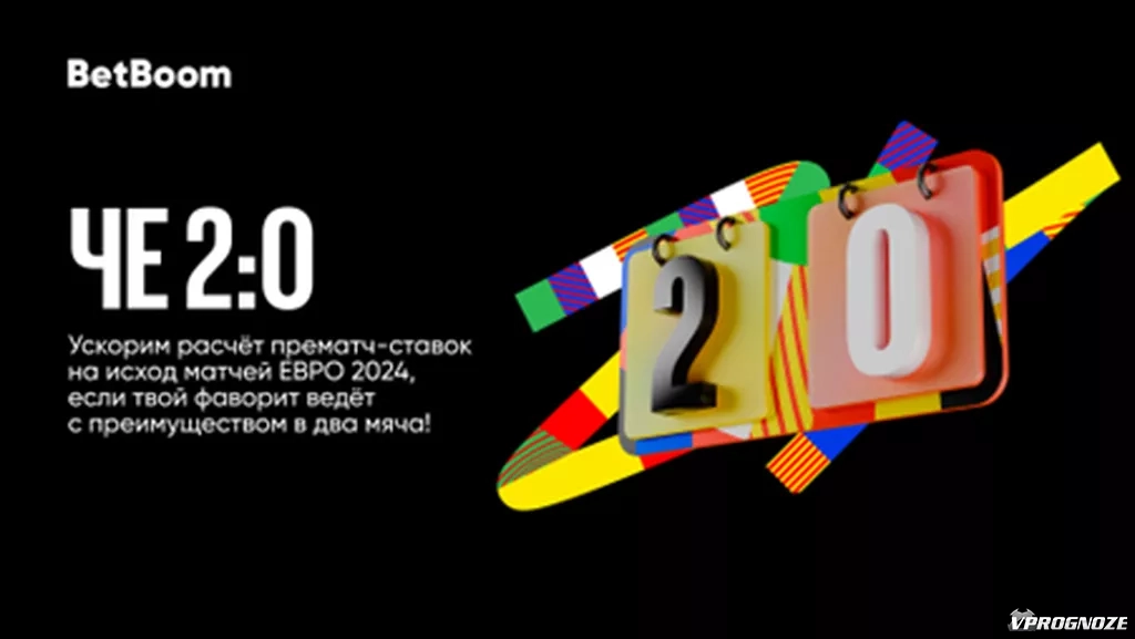 Совсем скоро начнется главное футбольное событие этого лета. Для всех клиентов BetBoom уже запустил акцию «ЧЕ 2:0». Теперь можно ждать камбеков без страха за свою ставку. Любой матч в ходе Евро-2024 будет рассчитан досрочно, если выбранная вами команда ведет в два мяча!