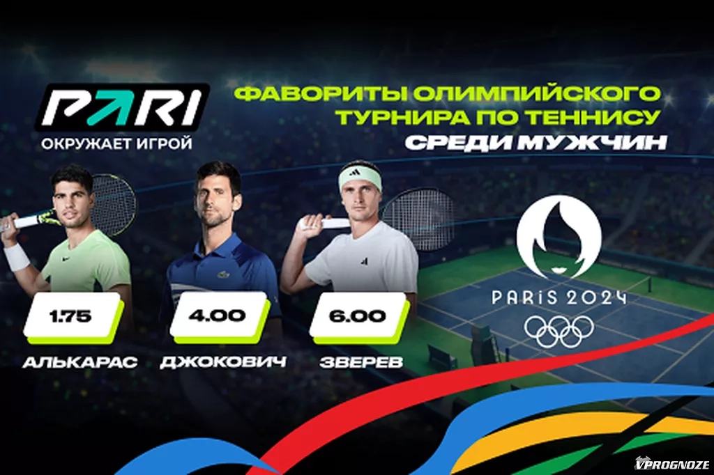По оценкам аналитиков PARI, главный претендент на победу в турнире — Карлос Алькарас. Сделать ставку на триумф 21-летнего испанца в Париже можно по коэффициенту 1.75. Любой результат Алькараса, кроме итоговой победы, оценивается коэффициентом 2.07. Алькарас — победитель четырех турниров «Большого шлема», два из них он выиграл в последние месяцы: в июне — «Ролан Гаррос», а в июле — Уимблдон. На первые в карьере Олимпийские игры испанец приехал в статусе третьей ракетки мира.