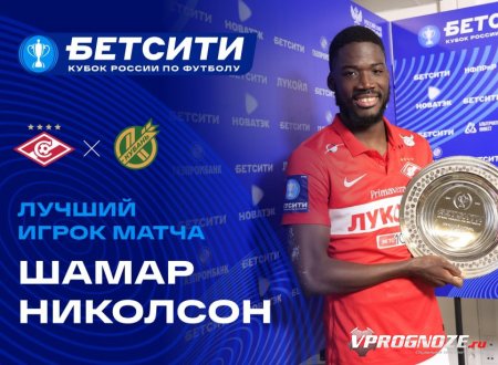 Нападающий «Спартака» Шамар Николсон признан лучшим игроком матча 1/8 финала БЕТСИТИ Кубка России, в котором «Спартак» разгромил «Кубань» со счетом 6:1.