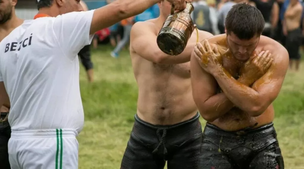 Яглы гюреш – традиционная турецкая борьба в масле, бои проходят на траве.