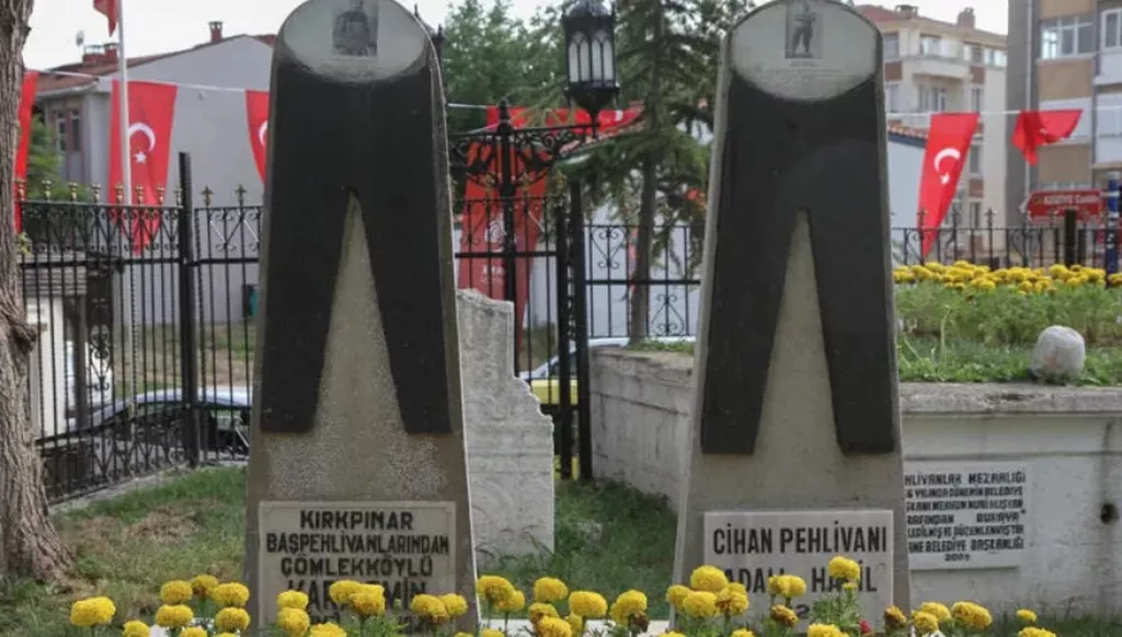 На могилах пехливанов Кара Эмина и Адалы Халиля в Эдирне изображен кисбет. Спортсмены, которые прибыли для участия в турнире, посещают место погребения чемпионов перед церемонией открытия соревнований.