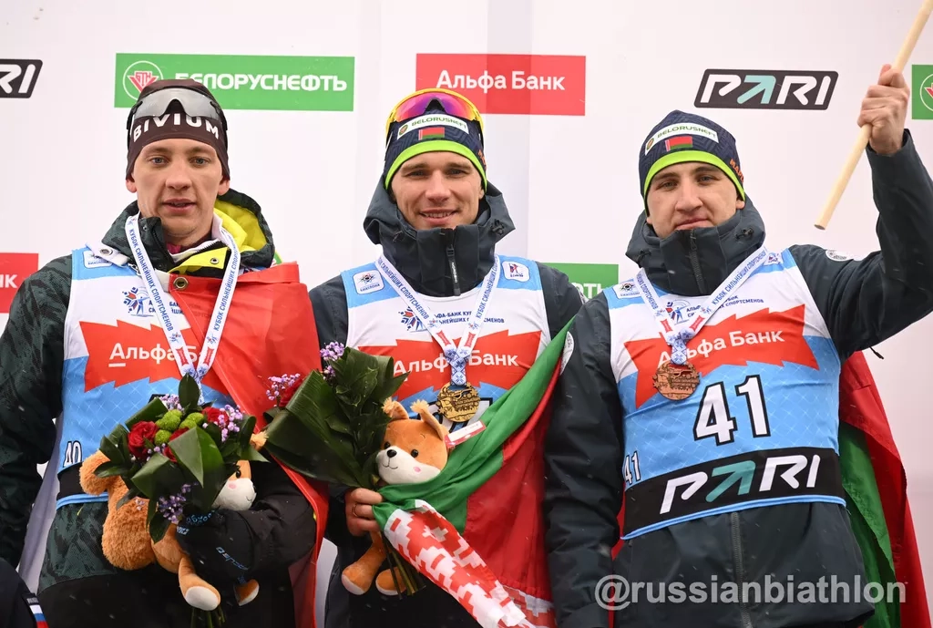 Если говорить о мужском противостоянии и вывести за скобки индивидуальную гонку, которая у белорусов откровенно не получилась, то можно говорить о полном разгроме маленькой командой всей огромной России. В спринте, преследовании и масс-старте белорусы отдали россиянам по одной медали и далеко не золотой. Очевидно, что выступление в родных стенах против более мощного номинально соперника стало для них хорошим стимулом и раздражителем. Чего стоит эмоциональная реакция на четвёртое место в индивидуальной гонке Дмитрия Лазовского, которому до бронзы не хватило долей секунды!