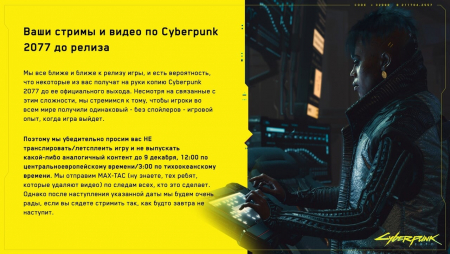 CD Projekt RED обратились к игрокам с просьбой не стримить Cyberpunk 2077 до официального релиза