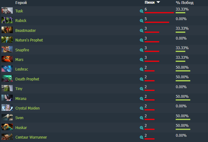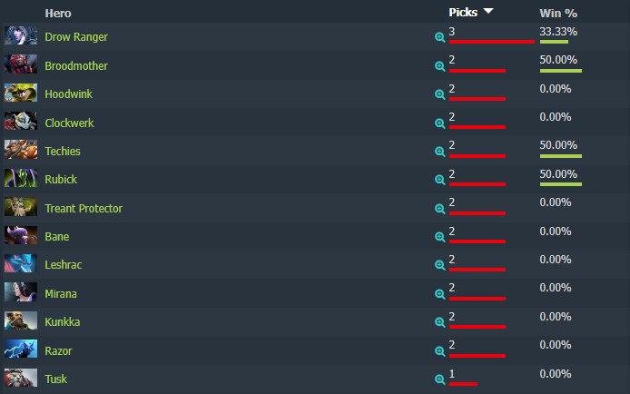 У команды «Куро» не всё так плохо, но это не отменяет того факта, что команда идёт внизу турнирной таблицы. Команда, очевидно, рейтит несколько героев, но пока что не получается показать нужный результат. Шесть раз KuroKy брал Tusk из которых две игры выиграл.