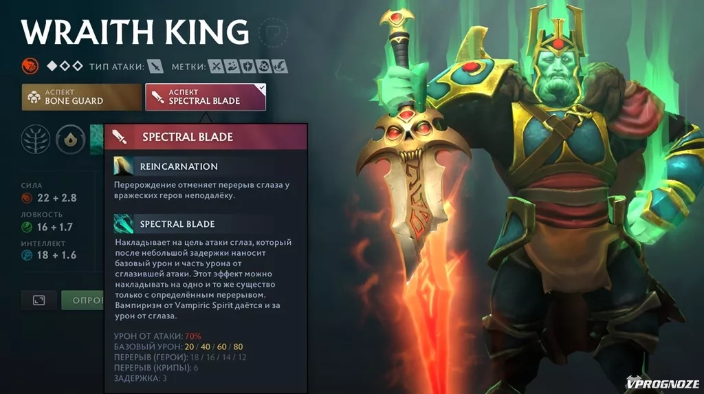 - Атаки Wraith King проклинают врагов, дебаффы делают другие заклинания сильнее.
