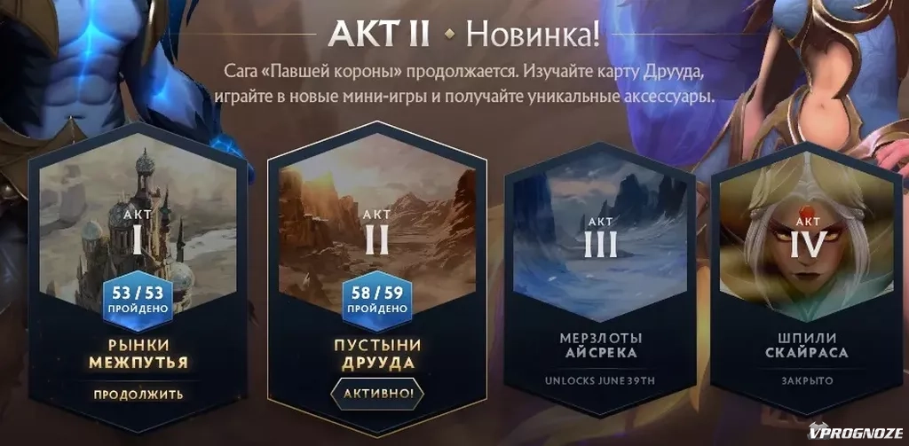 Ивент «Павшая корона» представляет из себя четыре акта, каждый из которых должен проходить в определенный отрезок времени. Данный ивент представляет собой обновленную версию катакомб. Чтобы получить призы, игроки обязаны побеждать на героях определенных видов, за победы даются жетоны, которые позволяют перейти к следующему призу.