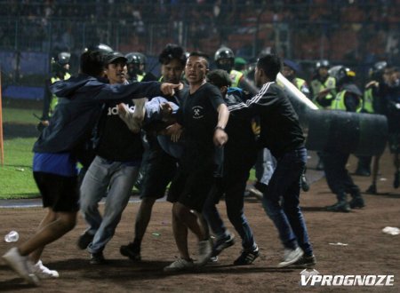 После окончания матча «Арема» – «Персебая», который завершился победой гостей со счётом 3:2, недовольные болельщики хозяев выбежали на поле. Между ними и сотрудниками службы безопасности завязалась массовая драка. По ходу столкновений правоохранители применили слезоточивый газ. Он попал на трибуны, где возникли паника и давка, приведшие к гибели людей.