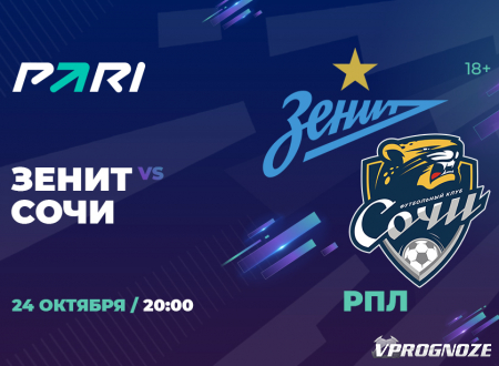 Программу 14-го тура РПЛ завершит матч, в котором сыграют действующие чемпион и серебряный призер прошлого розыгрыша РПЛ. «Зенит» в Санкт-Петербурге примет «Сочи». Встреча состоится в понедельник, 24 октября, и начнется в 20:00 по московскому времени. Букмекерская компания PARI оценила шансы команд и проанализировала, как ставят клиенты на предстоящую встречу.