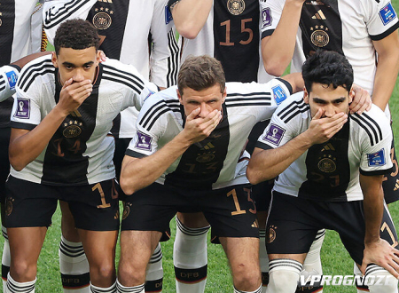 Все футболисты стартового состава сборной Германии закрыли рот рукой на командном фото перед началом матча чемпионата мира 2022 года в Катаре с Японией в рамках группового этапа квартета Е (1:1, идёт второй тайм). Футболисты немецкой сборной выступили таким образом против запрета на радужную повязку в поддержку ЛГБТ-сообщества.