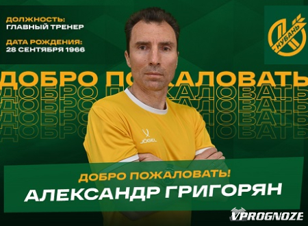 «Новым главным тренером «Кубани» назначен Александр Витальевич Григорян. Контракт 56 -летнего специалиста рассчитан до окончания спортивного сезона 2022/23 гг. С сегодняшнего дня Григорян приступает к работе с командой.