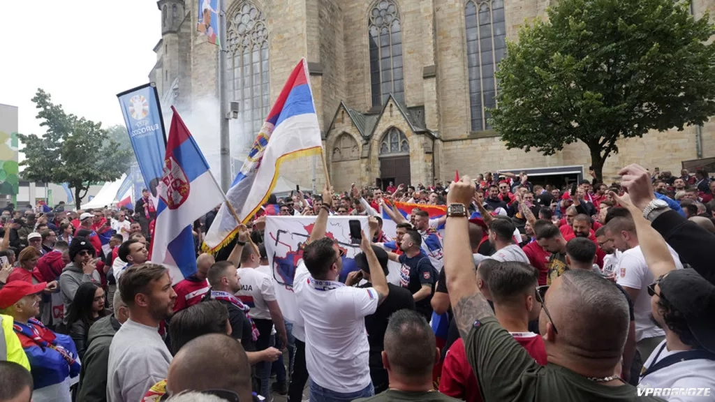 Болельщики сборной Сербии скандировали имя президента России Владимира Путина, собравшись на улице, во время проведения чемпионата Европы по футболу 2024 года.