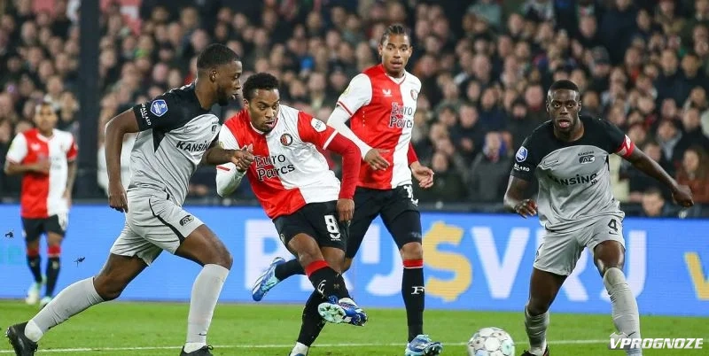 Нападающий ПСВ Ноа Ланг открыл счёт уже на девятой минуте встречи. Однако на 29-й минуте сначала Сантьяго Хименес с пенальти сравнял счёт, а через четыре минуты Барт Ньивкоп вывел гостей вперёд.