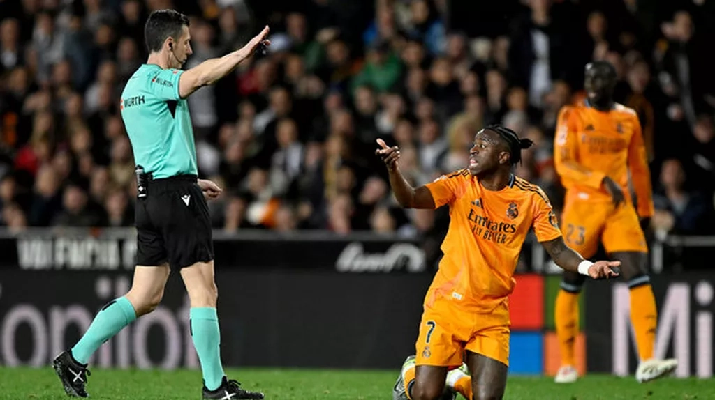 Крайнему полузащитнику мадридского «Реала» Винисиусу Жуниору может грозить длительная дисквалификация за удаление в перенесенной игре 12-го тура испанской Ла Лиги против «Валенсии» (2:1). Напомним, что на 79-й минуте встречи бразилец толкнул вратаря валенсийцев и получил красную карточку.
