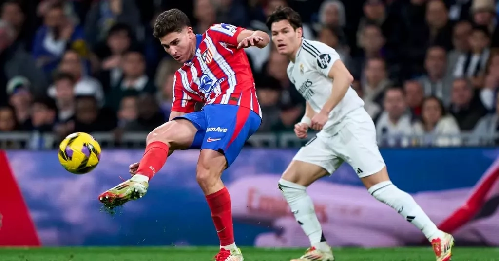 Мадридский «Реал» одержал победу над «Атлетико» в первом матче 1/8 финала Лиги чемпионов сезона 2024/2025. Игра прошла на стадионе «Сантьяго Бернабеу» и завершилась со счётом 2:1 в пользу «сливочных».