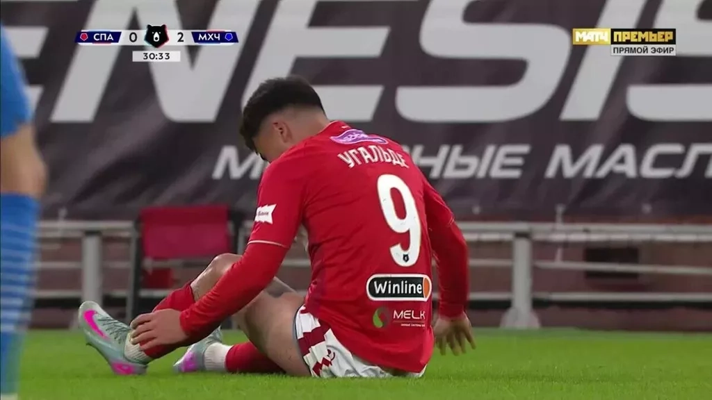 Форвард московского «Спартака» Манфред Угальде получил травму в первом тайме матча 24-го тура Российской Премьер-Лиги против махачкалинского «Динамо».