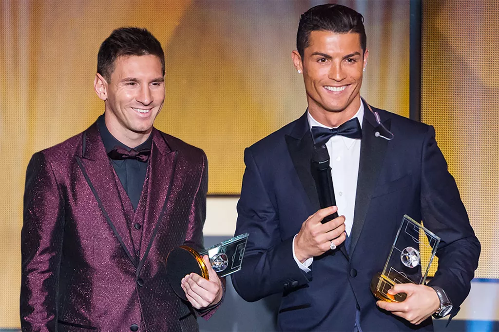 Лионель Месси становился обладателем «Золотого мяча» рекордное количество раз - 8 побед. Криштиану Роналду побеждал в номинации пять раз. Ранее оба футболиста соперничали во многих показателях результативности в период выступлений в испанской Ла Лиге (Роналду - за мадридский «Реал», Месси - за «Барселону»).