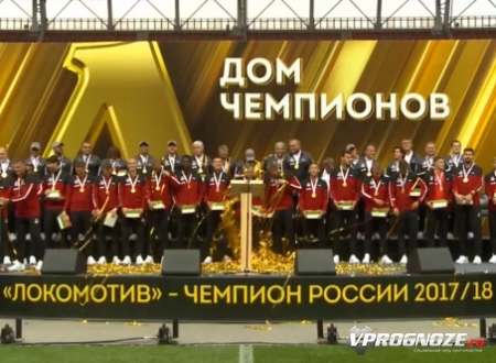 "Локомотив" был награжден золотыми медалями за первое место в чемпионате России в сезоне 2017/18. На встрече "железнодорожников" с болельщиками исполняющий обязанности президента РФС Александр Алаев вручил золотые награды за победу в РФПЛ.