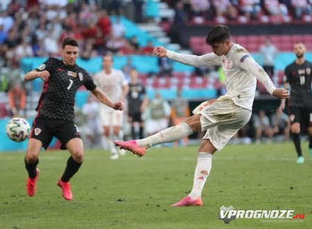 Национальная команда Испании в сверхрезультативном поединке отпраздновала победу над Хорватией в 1/8 финала ЧЕ по футболу 2020 года. Встреча состоялась в Копенгагене на арене «Паркен» и закончилась победой испанцев в овертайме со счетом 5:3.
