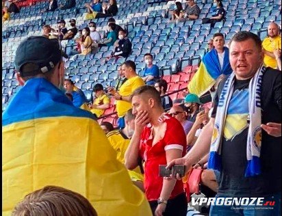 Российские фанат некоторое время находился на фанатском секторе украинской сборной в футболке национальной команды России, а также с флагом России. Некоторым болельщикам это не понравилось, и на фаната напали, разорвали ему футболку и отобрали флаг. Примечательно, что другая группа фанатов украинской сборной постаралась защитить российского болельщика от нападения.