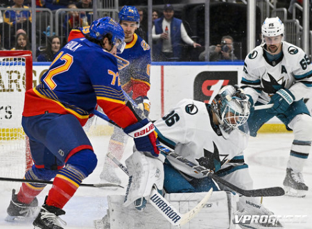 «Сент-Луис Блюз» дома обыграл «Сан-Хосе Шаркс» со счётом 4:2 (1:1, 1:1, 2:0) в матче регулярного чемпионата НХЛ. Важный вклад в успех хозяев внёс российский левый крайний Павел Бучневич, набравший два очка по системе «гол + пас».