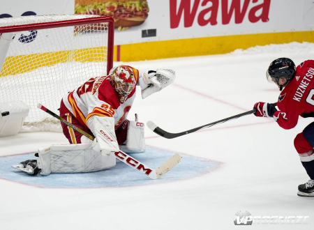 «Вашингтон Кэпиталс» победил «Калгари Флэймс» по буллитам со счётом 3:2 (0:2, 2:0, 0:0, 1:0) в матче регулярного чемпионата НХЛ. Решающий вклад в успех хозяев внёс российский центральный нападающий Евгений Кузнецов.