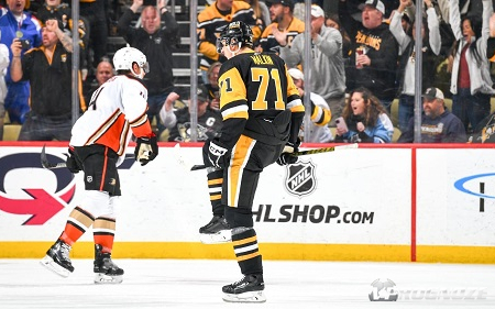 «Питтсбург Пингвинс» проиграл «Анахайм Дакс» со счётом 3:4 (1:1, 1:1, 1:2) дома в матче регулярного чемпионата НХЛ. Лучшим в составе хозяев был российский центральный нападающий Евгений Малкин, набравший два очка по системе «гол + пас».