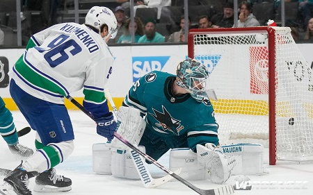 «Ванкувер Кэнакс» победил «Сан-Хосе Шаркс» со счётом 10:1 (4:0, 4:0, 2:1) на выезде в матче регулярного чемпионата НХЛ. Вклад в успех гостей внёс российский левый крайний Андрей Кузьменко, набравший два очка по системе «гол + пас».