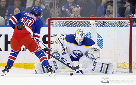 «Нью-Йорк Рейнджерс» проиграл «Баффало Сэйбрс» со счётом 1:5 (0:1, 0:1, 1:3) дома в матче регулярного чемпионата НХЛ. Одним из лучших в составе хозяев был российский левый крайний Артемий Панарин, набравший одно очко по системе «гол + пас».