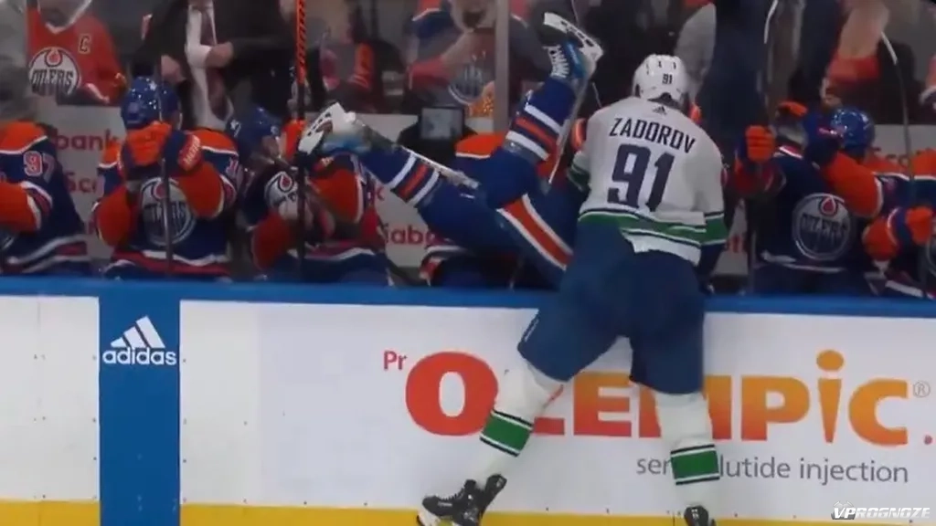 Российский защитник «Ванкувер Кэнакс» Никита Задоров стал главным героем одного из самых зрелищных эпизодов матча с «Эдмонтон Ойлерс».