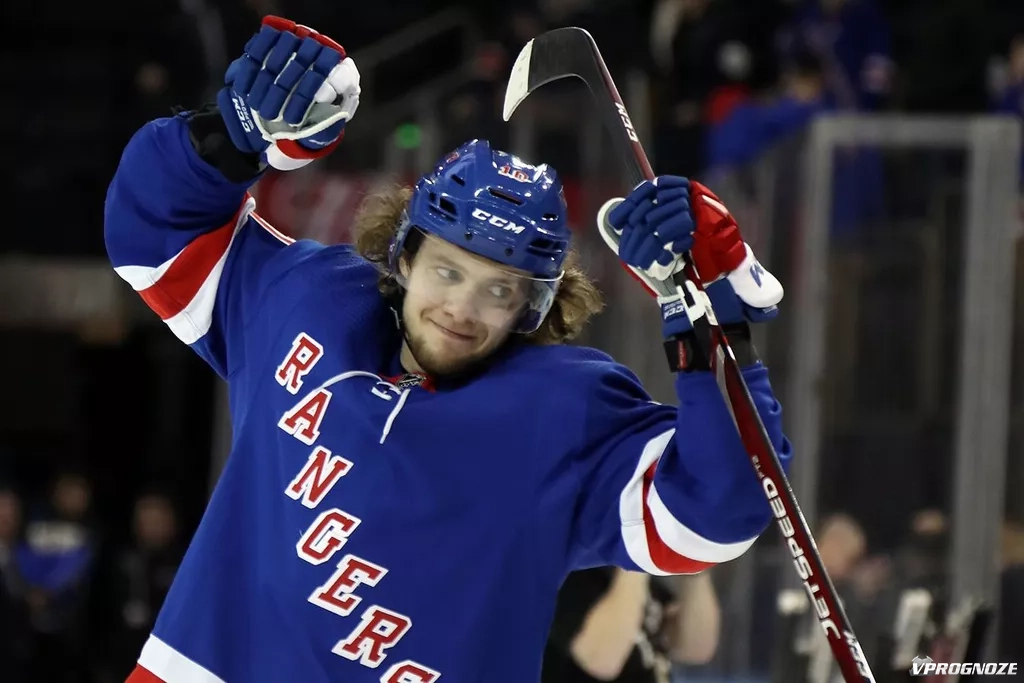 На счету российского нападающего «Рейнджерс» Артемия Панарина три заброшенный шайбы, а также одна результативная передача. Его признали первой звездой встречи.