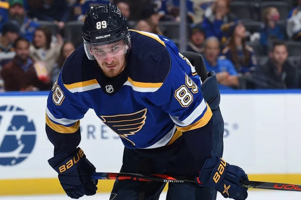 Павел Бучневич, российский нападающий «Блюз», забросил свою 13-ю шайбу в текущем сезоне, также на его счету 29 результативных передач.