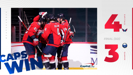 «Вашингтон» одержал победу сегодня ночью над «Баффало» (4:3 Б) в матче регулярного чемпионата НХЛ.