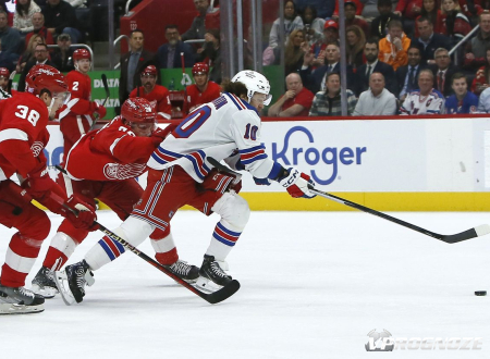 «Нью-Йорк Рейнджерс» на выезде разгромил «Детройт Ред Уингс» со счётом 8:2 (1:1, 1:1, 6:0) в матче регулярного чемпионата НХЛ. Одним из лидеров в составе гостей был российский левый крайний Артемий Панарин.