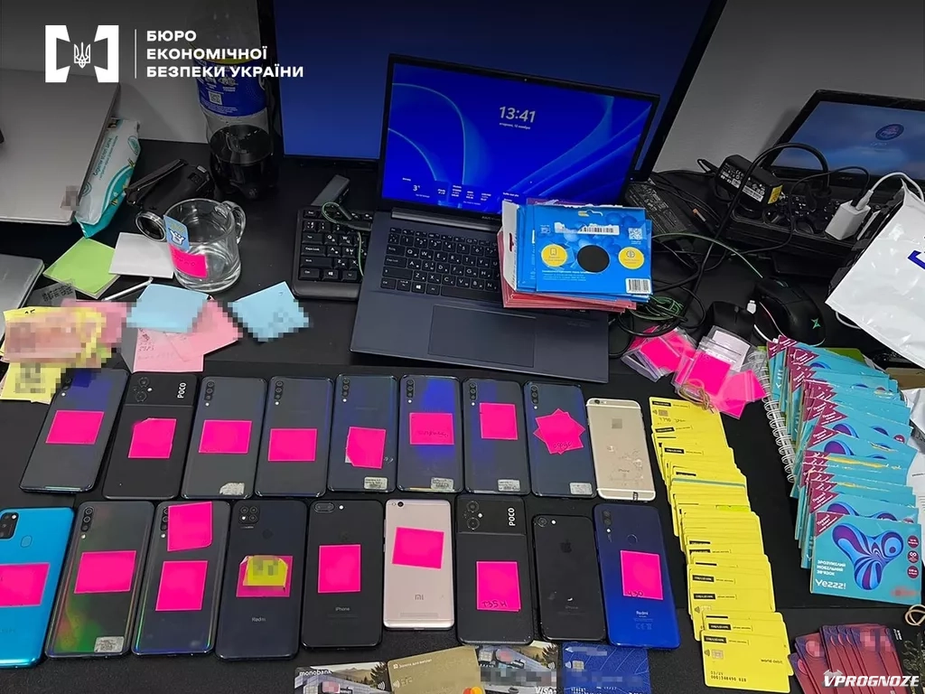 Во время обысков офисов в Киевской, Полтавской, Харьковской и Одесской областях детективы изъяли более 100 банковских карт, 100 мобильных телефонов с приложениями банков, наличные, криптовалюту, а также автомобили премиум-класса (Audi Q8, BMW X7). Также обнаружена отчетная документация, данные о логинах и паролях к банковским аккаунтам и т.п.