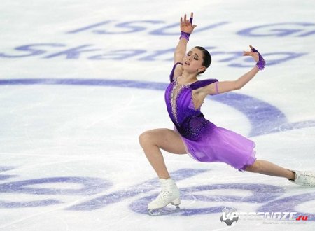 Она прыгнула тройной аксель с ошибкой на выезде, затем исполнила тройной флип и каскад тройной лутц+тройной тулуп.