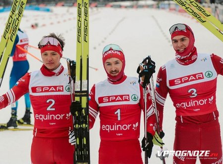 Российские лыжники в составе Никиты Родионова, Александра Ившина, Никиты Денисова и Савелия Коростелева сумели опередить всех конкурентов и занять первое место.