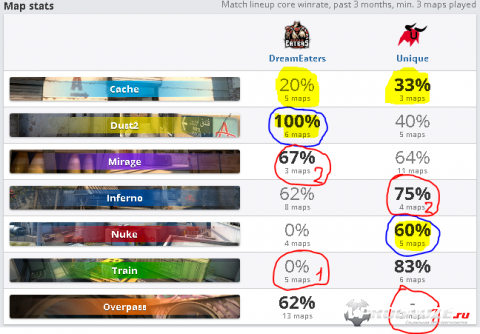 Добрый день. Сегодня решил сделать прогноз на СНГ матч. Играют DreamEaters против Unique. Турнир QIWI Teamplay Season 3, играют сегодня за как минимум 750$ на команду. Конечно сильной мотивации нет у команд, и форма команд оставляет желать лучшего, но как по мне Unique это команда которая сейчас растёт и начинает немного проявлять себя, да вчера у команды были неудачные игры против Португальцев и против Шведов, но уровень Шведской команды на голову выше. Португальцам проиграли обидно и глупо не дожали их на первой карте и проиграли 14:16 . Если судить даже наглядно каким командам проигрывали Юники и каким Дримы то понятно, что уровень команд против которых играли Юники выше, чем уровень команд против которых играли Дримы. У игрока Юников (Фаната Рока) есть проблема с мышкой, об этом он писал в своём вк, но я думаю решить их до матча он сможет. Что по Маппику то я почти уверен, что Юники забанят Оверпас, а Дримы Трейн, пикнут Юники Нюк, а Дримы даст 2, дальше уже чисто как решат команды, определить точно не могу, но брошу предикт. Много стаить не советую, ибо матч 40 на 60. Но %2.5 от банка можно поставить на Юников.