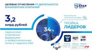 Букмекерские компании перечислили более трёх миллиардов рублей на развитие российского спорта
