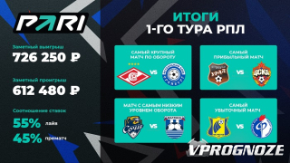 PARI об итога 1-го тура РПЛ: Больше всего клиенты ставили на матч «Спартак» — «Оренбург»