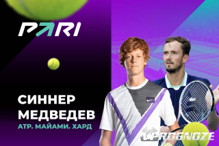 Клиент PARI поставил 226 000 рублей на победу Синнера над Медведевым в финале турнира в Майами