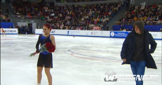 Мужчина вышел на лед и подарил цветы Трусовой после выступления