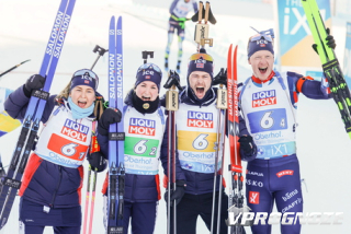 Сборная Норвегии выиграла эстафету на ЧМ по биатлону