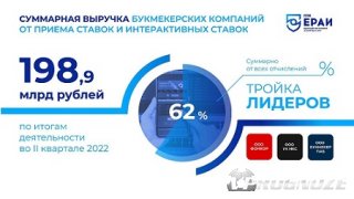 Выручка букмекерских компаний во II квартале 2022 года составила 198,9 млрд рублей