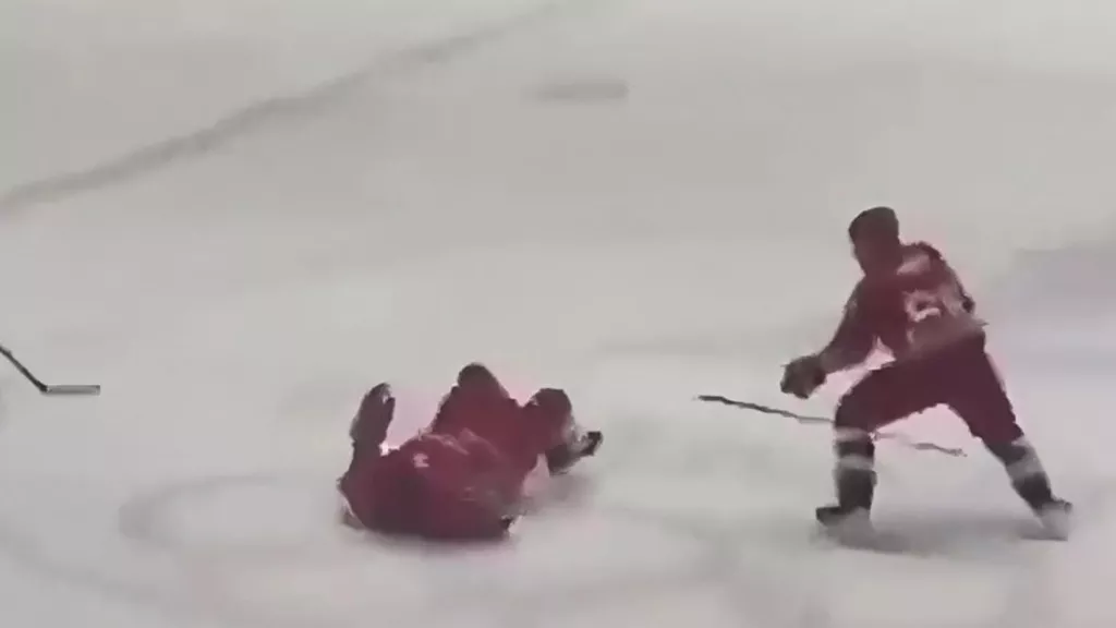 Президента Беларуси Александра Лукашенко сбили с ног во время хоккейного матча