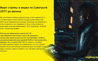 CD Projekt RED обратились к игрокам с просьбой не стримить Cyberpunk 2077 до официального релиза
