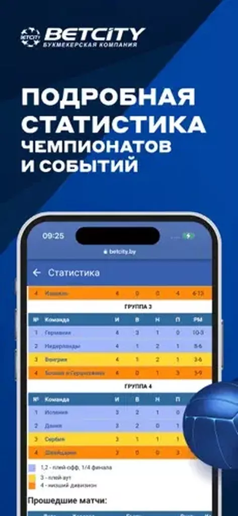 В ПО Бетсити игрокам доступны прямые эфиры популярных спортивных противостояний, раздел с результатами завершенных противостояний и раздел «Статистика» для анализа статистических показателей предстоящих матчей.